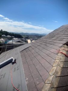 このままだと雨漏りの危険もありますので、既存の屋根を取り外さず、上から新しい屋根材を設置するカバー工法での屋根修理を提案させていただきました。