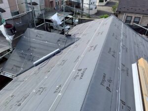 次に新しい防水シートを既存屋根の上から設置していきます。