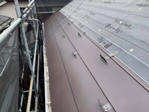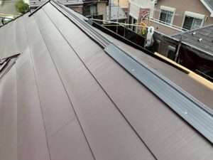棟板金は屋根の頂上部分に覆うようにかぶせる板金ですが、こちらを設置することで、屋根の結合部分の隙間をカバーし、雨水が侵入することを防ぐことができます。