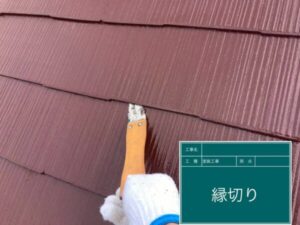 これはスレート屋根の塗装にとって非常に大切な工程で、スレートの屋根材と屋根材同士の隙間に流れて固まった塗料をカッターなどを使用しながら、切っていく作業です。