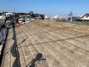 野地板という土台の木材を設置し、劣化した元屋根に安定性をプラス。