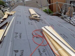 とはいっても、バルコニーや外壁のように塗装ではなく、ルーフィングという防水シートを敷設します。