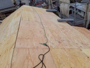 野地板と呼ばれる広い土台の板を設置しておきます。